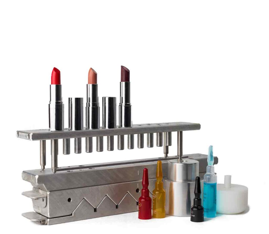 In this category you can find stainless steel molds for lipsticks, powders and blushers, dispensers, sealing machines for jars and bottles, tin cans for eye shadows and powders and more.